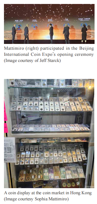 Starting the trip in Hong Kong, Mattimiro and Starck made a stop at a permanent coin market. The small three-story building housed numerous small shops specializing in coins, bank notes, stamps, and antiques. The selection included offerings from every corner of the world.