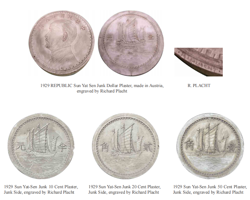 The following day's examination of the plaster models by Placht was a revelation. The artistry of the master designer and engraver was stunning, particularly the exceptional sharpness and detail of the sail on the Junk pattern model. Helmut noted that the quality of the plaster material used in that era was far superior to what is available today. We also discovered plaster models for minor 1929 Junk pattern coins (10, 20, and 50 cents), originally intended as copper coins, with the values and dates inscribed on the obverse and reverse of the models. This was a fantastic discovery that added to the understanding of theChinese coins produced at the Austria mint. It was also in line with the historical practice of striking five pattern coins for each type: one reserved for the mint, one for the die-producing company (Böhler Brothers & Co. Vienna.), one for the Historical Museum, and two given to the designer. Richard Placht later sold his personal set of pattern coins to Eduard Kann in the 1950s, which were subsequently documented in Kann's Illustrated Catalog of Chinese Coins in 1954.