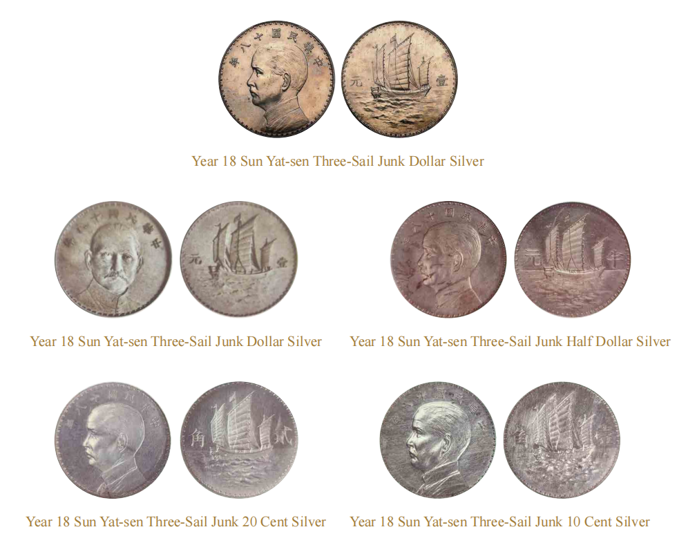 After the victory of the Northern Expedition in 1927, when the Government of the Republic of China achieved nominal unification, China's currency market was in a state of considerable chaos. First, there was a wide variety of coin types. In addition to the Yuan Shikai and Sun Yat-sen silver dollars commemorating the birth of the Republic of China, minted by the central mint, various provinces still circulated their own silver coins, and silver dollars from the Qing dynasty remained in use, resulting in over 20 major types of silver coins. Second, weight standards differed across the country: the Kuping tael (Treasury Standard) was used in the north, the Caoping tael (Tribute Standard) in the south, and accounts in Shanghai were kept in Guiyuan (the Shanghai Tael). This inconsistency raised transaction costs. Moreover, foreign banks such as the Hongkong and Shanghai Banking Corporation Limited and the National City Bank of New York (currently Citibank) issued “silver dollar notes” that accounted for half of the currency in circulation. To regain monetary sovereignty, the government urgently needed to unify the currency. Thus, the policy of “Abolish the Tael, Adopt the Dollar” was proposed in order to end the silver tael system and make the silver dollar the sole legal tender. This was the background that led to the creation of the 1929 Sun Yat-sendollar with a three-sail junk design. Breaking from the tradition of local minting, the government commissioned five foreign mints—in the United States, Great Britain, Italy, Japan, and Austria—to design and engrave dies and produce pattern coins.